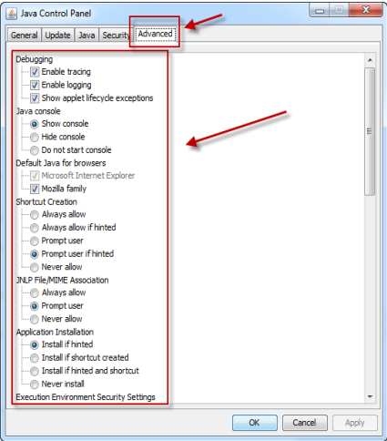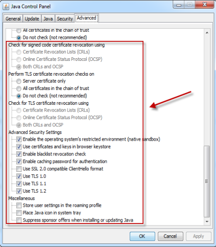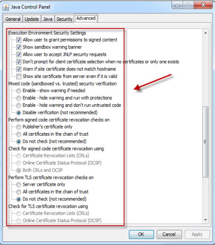 Lưu ý: Các thiết lập trong phần này giúp giảm bớt các lớp kiểm tra bảo mật của Java vốn không tương thích với các cổng dịch vụ công cũ.
